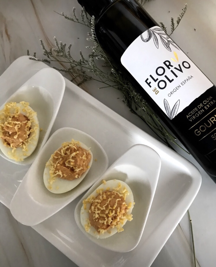 Huevos rellenos de mayonesa healthy, pimientos y atún