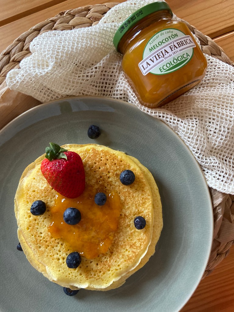 - Toppings: Fresas, arándanos y mermelada de melocotón de La Vieja Fábrica